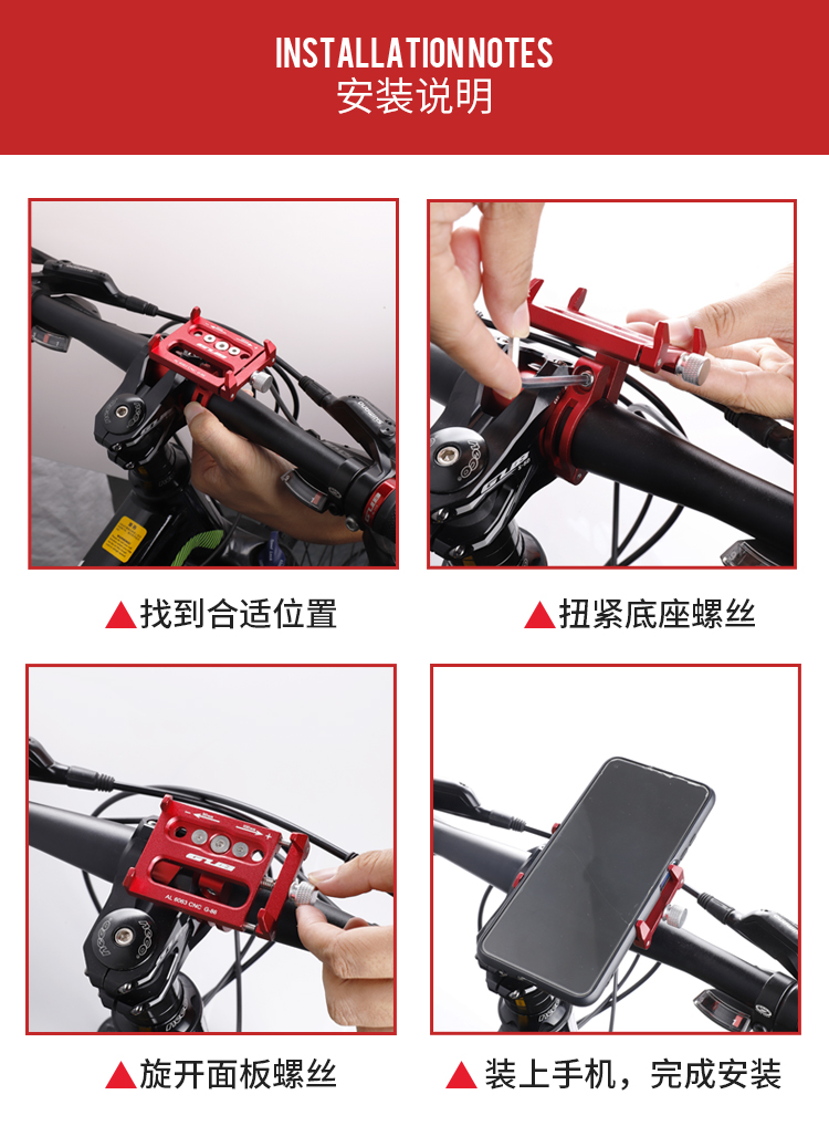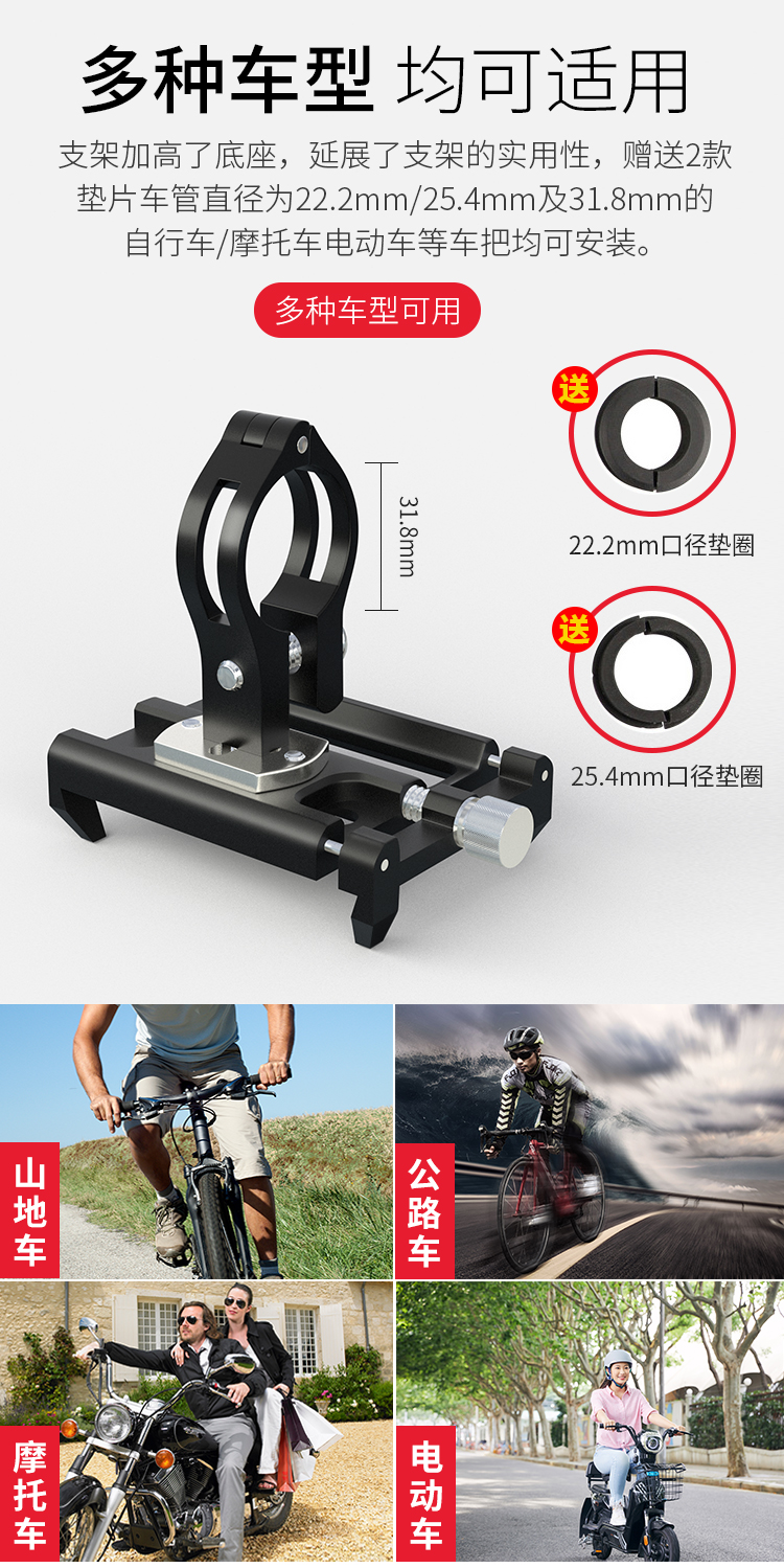 簡介:可簡單快捷安裝在車把或車頭,能讓您在外出騎行時輕松享受音樂,亦可導(dǎo)航為您指路,穩(wěn)定牢固,四爪扣更易固定手機(jī)。