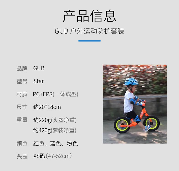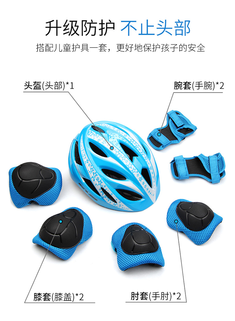 特色:兒童騎行戶外運動頭盔套裝,采用PC+EPS一體成型技術(shù),更安全更貼心,同時頭盔尾部的反光標(biāo)起到警示作用,讓孩子的夜騎更安全。另搭配兒童護具一套,貼心呵護孩子的安全!