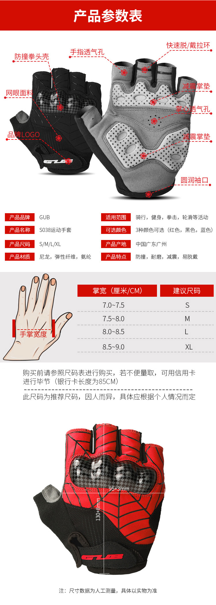 名稱:GUB S038 防撞手套