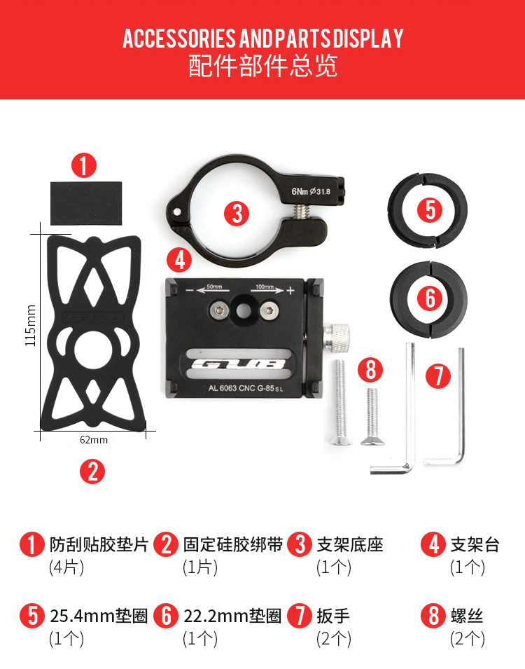 特色:G-85經(jīng)典升級,浮雕LOGO工藝,新增硅膠綁片,全方位牢固手機,讓您騎樂無窮!