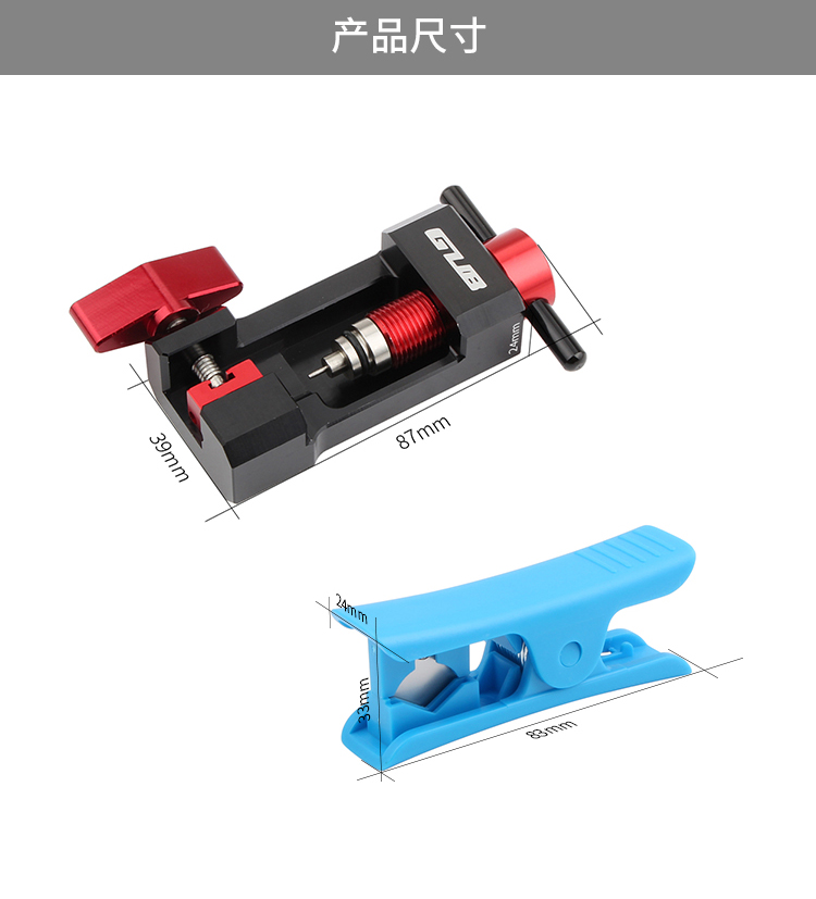 材質(zhì):全鋁合金臺+不銹鋼頂針(油針壓入工具),ABS工程塑料+不銹鋼刀片(油管切割器)