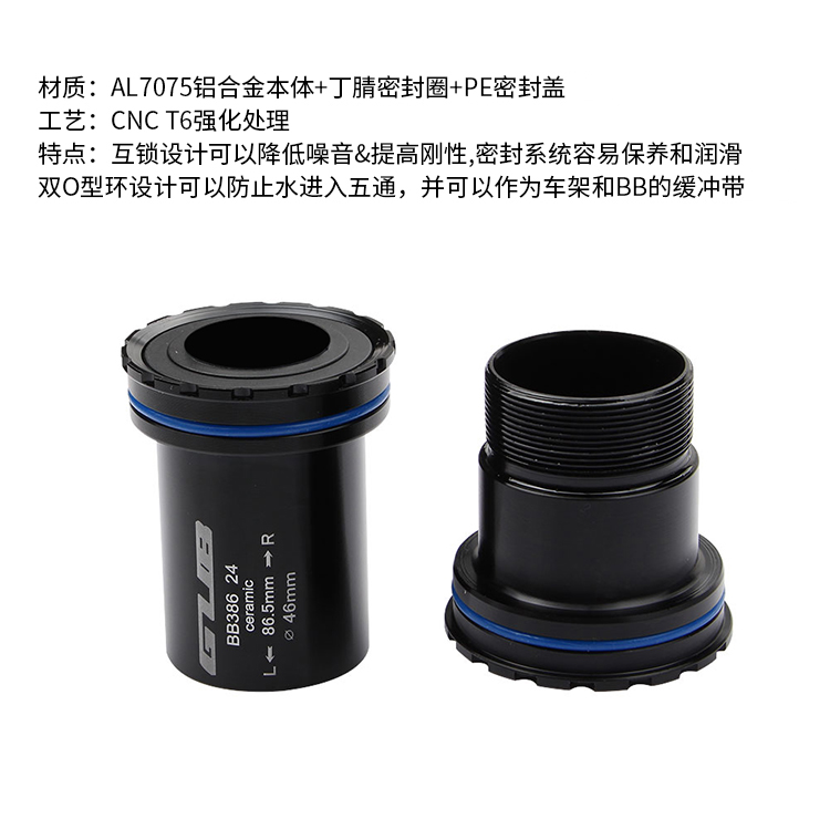 特點:互鎖設計可以降低噪音&提高剛性,密封系統(tǒng)容易保養(yǎng)和潤滑,.雙O型環(huán)設計可以有效防止水進入五通,并可以作為車架和BB的緩沖帶