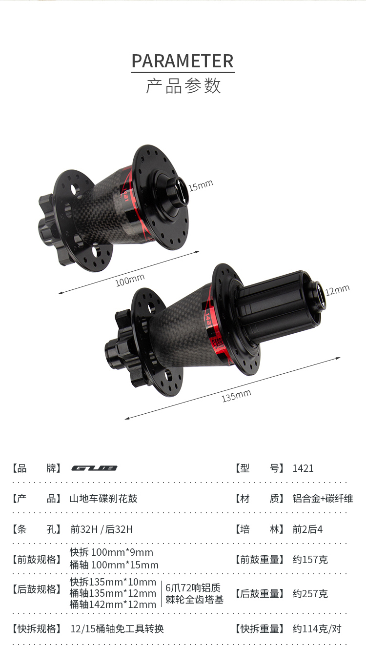 產(chǎn)品:GUB 1421 碳纖維碟剎花鼓