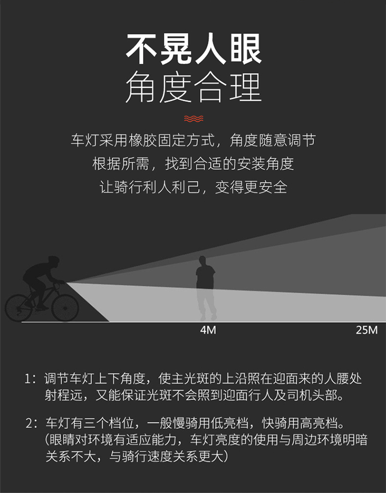 燈光模式:高亮/中亮/低亮/SOS
