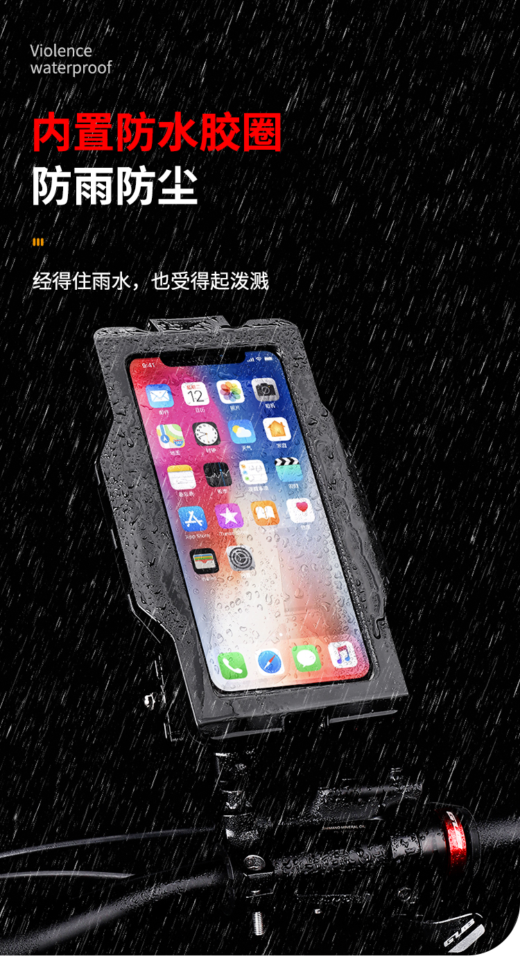 特點:鋁合金支撐架,全封閉手機盒,防雨無憂,高兼容性不挑手機型號,摩托車、電動車等都可使用,滿足多場景使用需求。