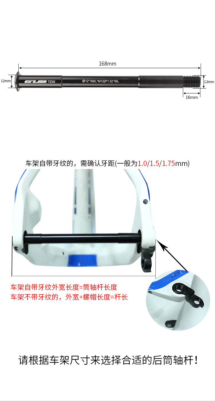 說明:請根據(jù)前叉和車架尺寸選擇合適的桶軸桿!