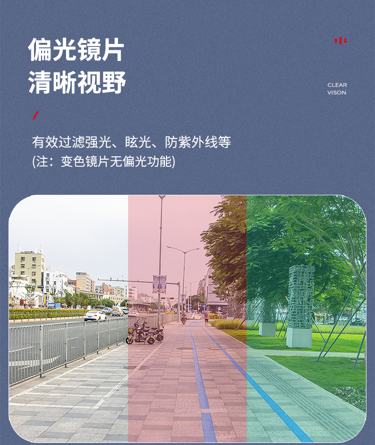 顏色:?jiǎn)『?透明變色+炫紅偏光、亮白/透明變色+白冰藍(lán)偏光
