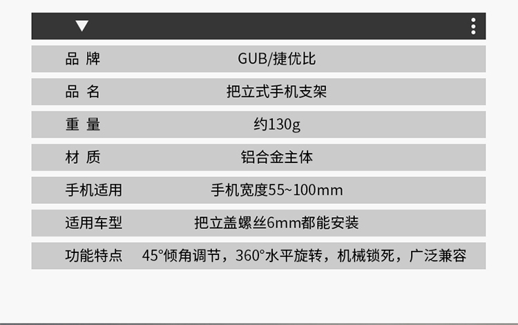 重量:約130克(單手機架)/約163克(毛重)