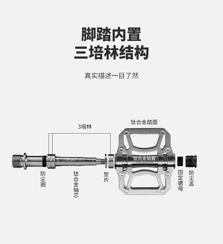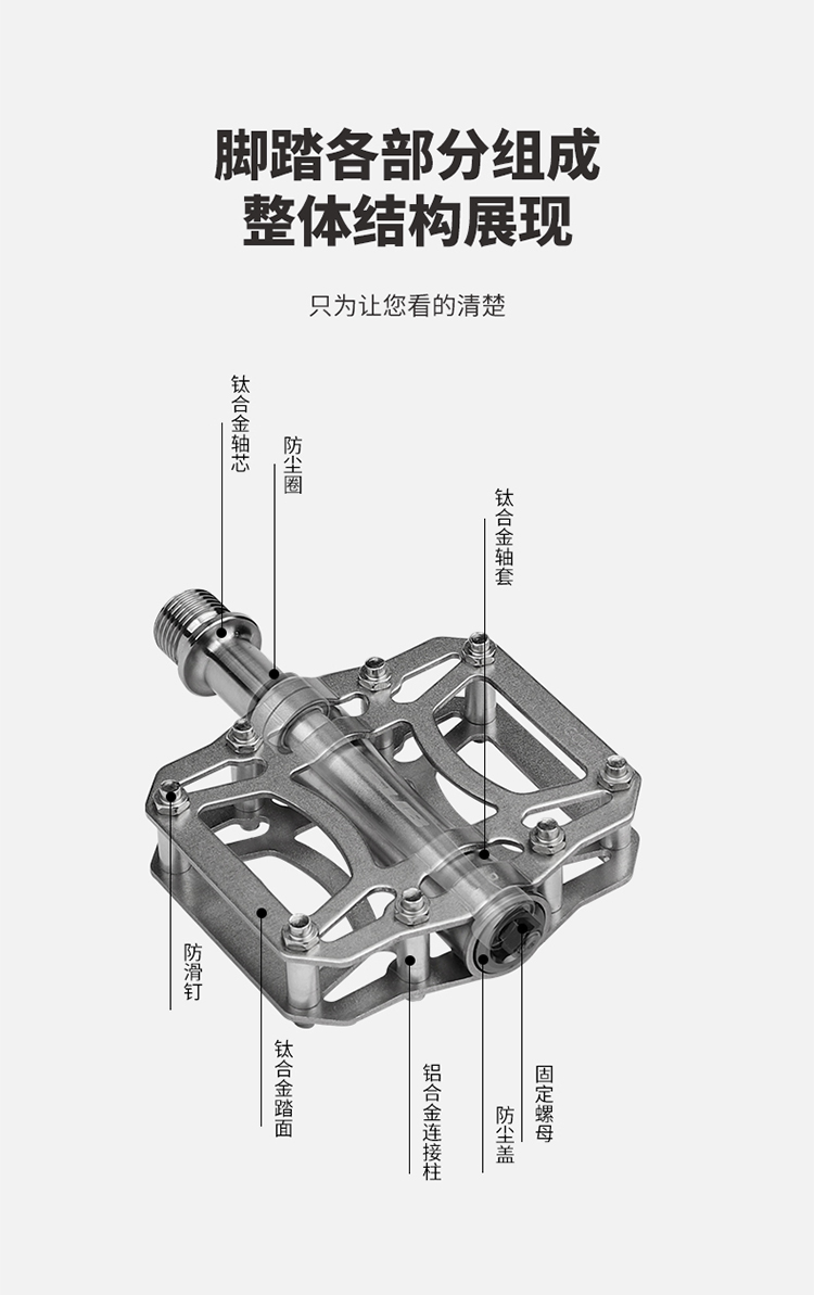 材質(zhì):鈦合金踏板+鈦合金軸套+鈦合金軸芯