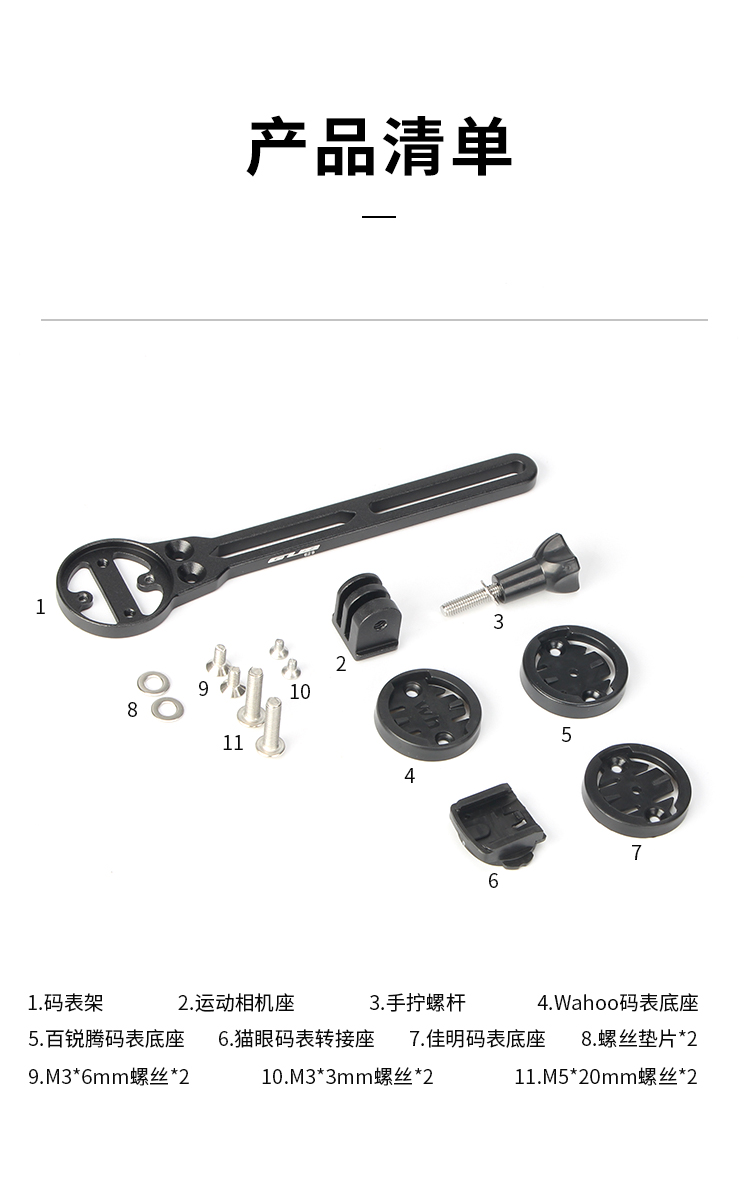 配置:配運(yùn)動(dòng)相機(jī)轉(zhuǎn)接座,wahoo、佳明、百銳騰和貓眼碼表接座