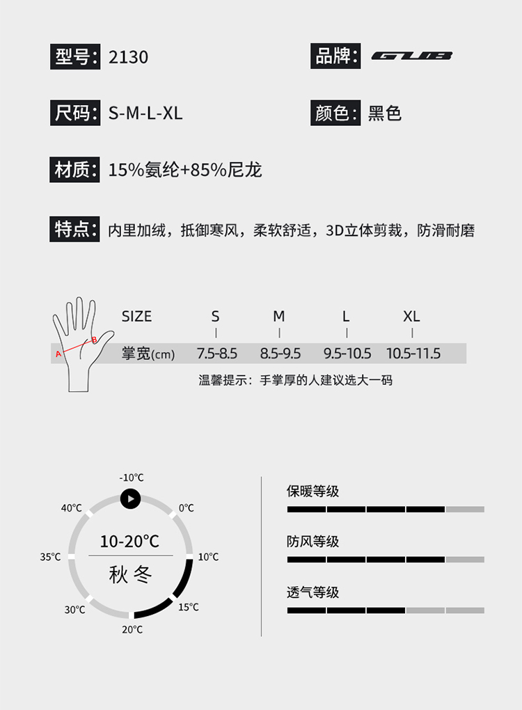 特點(diǎn):內(nèi)里加絨,抵御寒風(fēng),柔軟舒適,3D立體裁剪,防滑耐磨,支持觸屏