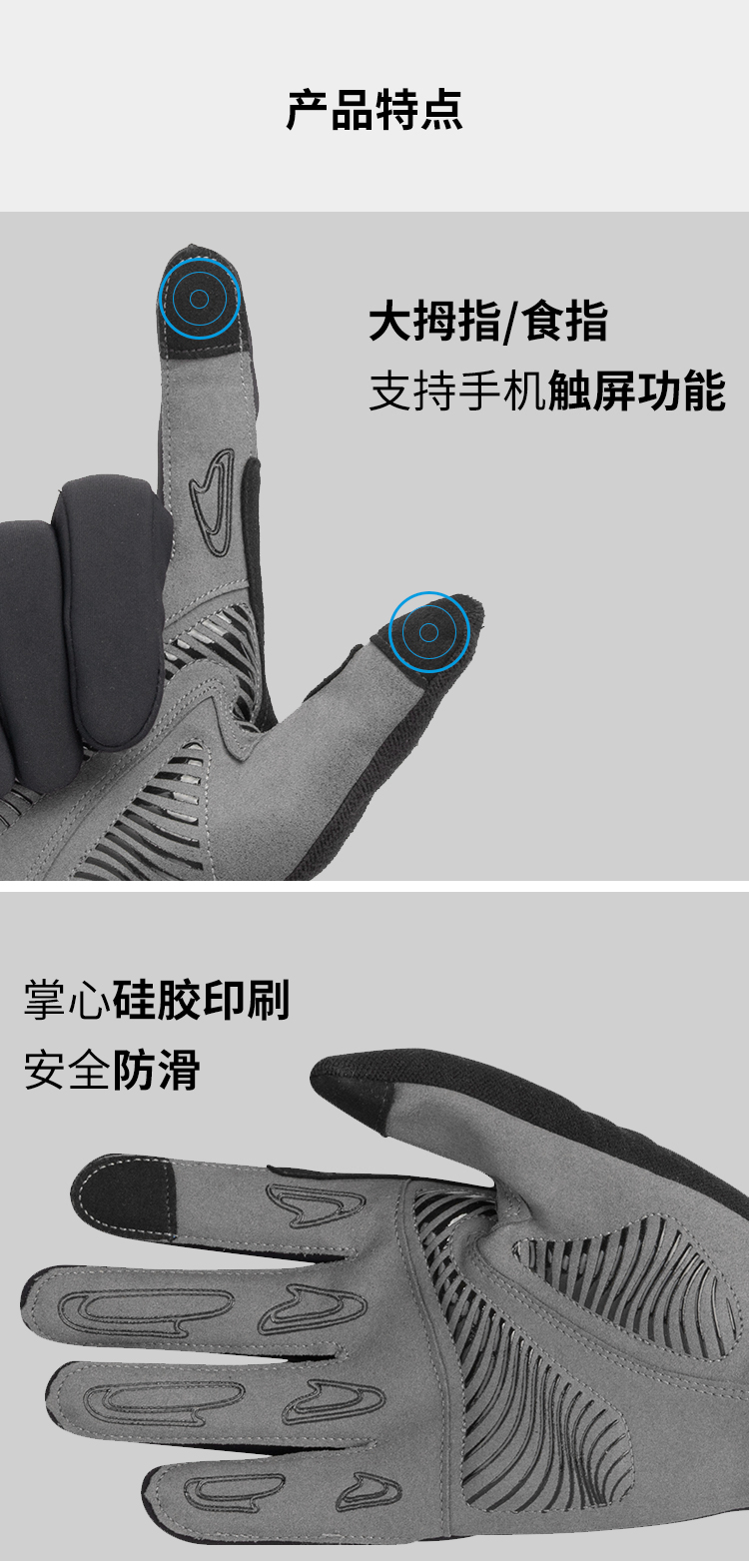 特點:內(nèi)里加絨,抵御寒風,柔軟舒適,3D立體裁剪,防滑耐磨,支持觸屏