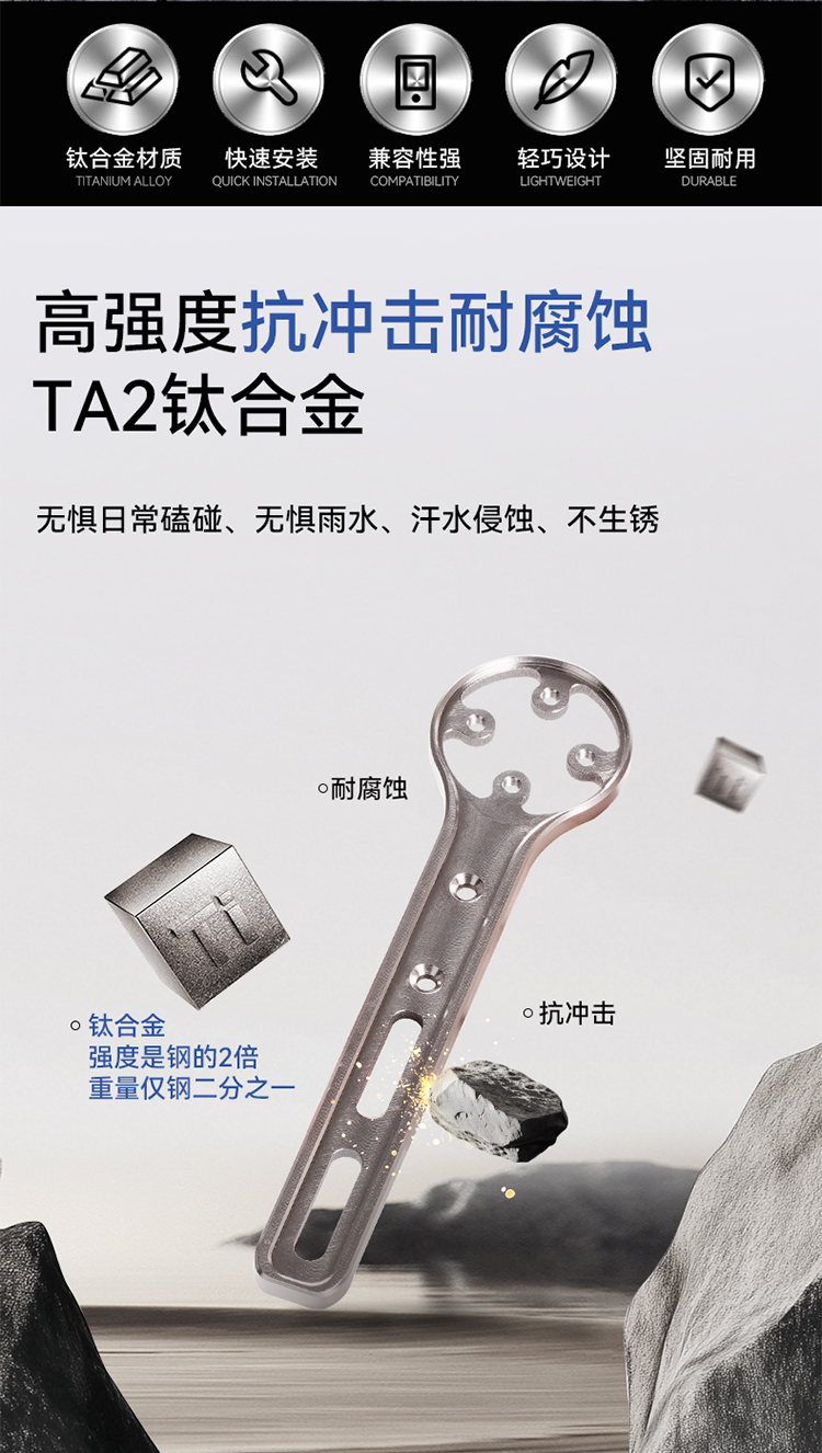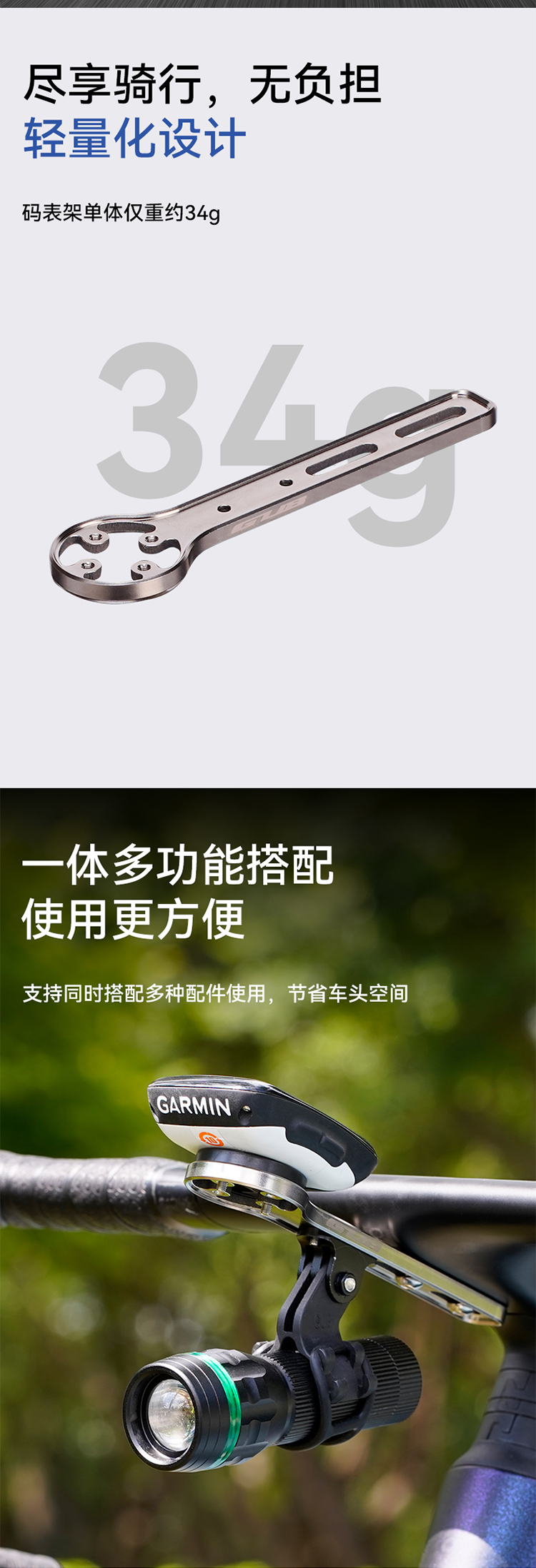 特點(diǎn):鈦合金超輕架體,居中安裝節(jié)省空間(一體把專用),兼容多種碼表,標(biāo)配運(yùn)動相機(jī)轉(zhuǎn)接座,可擴(kuò)展使用運(yùn)動相機(jī)等配件