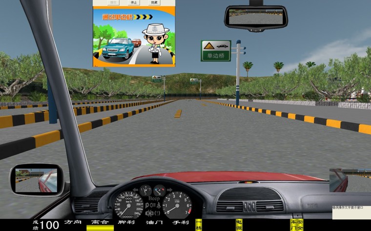 華育寬頻 HYM-9 型汽車駕駛模擬器是一種 80 度視角配 22 寸液晶彩顯的多功能新一代的主被動(dòng)式汽車駕駛模擬器。它突破了原來(lái)在行駛十字路口向左拐的視線盲區(qū),行起車來(lái)更加方便逼真, 從而清楚的觀察車輛與路面的位置關(guān)系。是目前市場(chǎng)上絕對(duì)最新版的汽車駕駛模擬器軟件。 一、界面顯示 新增加 有: 轉(zhuǎn)向、 油門、 剎車、 離合器深淺進(jìn)度; 檔位、 訓(xùn)練成績(jī), 后視鏡(左、右、中)、 場(chǎng)景地圖顯示; 界面儀表盤上顯示有: 車速表、 發(fā)動(dòng)機(jī)轉(zhuǎn)速表、 大燈、(遠(yuǎn)光燈、近光燈、視寬燈)、 轉(zhuǎn)向燈、 安全帶提示燈、 車門關(guān)閉提示燈、 機(jī)油燈、 電瓶警告燈等。 在訓(xùn)練過(guò)程中、通過(guò)雙擊鼠標(biāo)、可實(shí)現(xiàn)正視和俯視圖像駕駛之間切換。 三、本模擬系統(tǒng)界面里不同車型之間自由轉(zhuǎn)換,其車型有: 小轎車、 吉普車、 無(wú)級(jí)變速車(自動(dòng)檔)、 農(nóng)用車、 大貨車、 大客車、 (車型等多達(dá)六種學(xué)員可以在模擬器上體會(huì)不同車型的駕駛體會(huì)與樂(lè)趣) 四、學(xué)員可以根據(jù)自己駕駛的熟練程度選項(xiàng)訓(xùn)練,分三級(jí)訓(xùn)練,即 1 、初級(jí)駕駛; 2 、中級(jí)駕駛; 3 、高級(jí)駕駛訓(xùn)練: 初級(jí)駕駛訓(xùn)練 :初級(jí)駕駛可分為六種車型和三種練習(xí)方法,即 1 、被動(dòng)駕駛; 2 、原地訓(xùn)練; 3 、簡(jiǎn)易道路等訓(xùn)練 中級(jí)駕駛訓(xùn)練 :可選擇場(chǎng)景內(nèi)的相應(yīng)功能訓(xùn)練:車輛的數(shù)量、車型、道路、天氣等。 高級(jí)駕駛訓(xùn)練 :可選車輛的數(shù)量、車型、道路、天氣及 交通部規(guī)定的九項(xiàng)專項(xiàng)訓(xùn)練 即: 1 通過(guò)連續(xù)障礙、 2 通過(guò)單邊橋、 3 直角轉(zhuǎn)彎、 4 側(cè)方位停車、 5 上坡定點(diǎn)停車與坡道起步、 6 限速通過(guò)限寬門、 7 百米 加減檔、 8 起伏路駕駛、 9 曲線行駛等 。場(chǎng)景內(nèi)最多可達(dá) 60 輛其他車輛,達(dá)到模擬逼真的交通流狀況。 訓(xùn)練氣候 面有:“