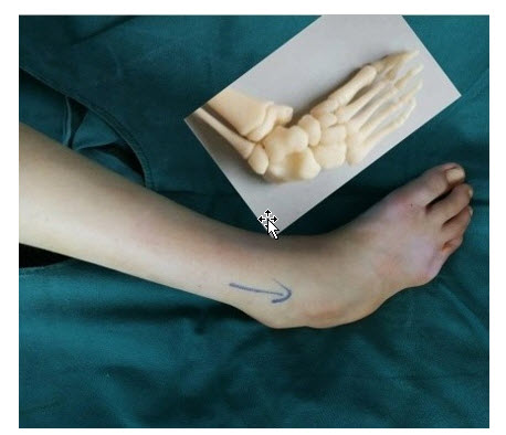圖5:術(shù)前對(duì)照3D打印患足模型