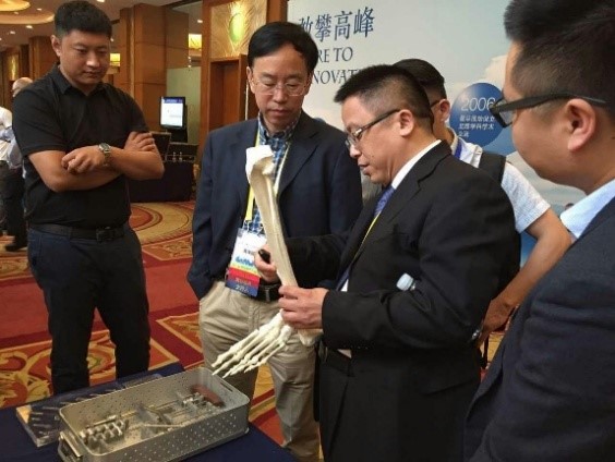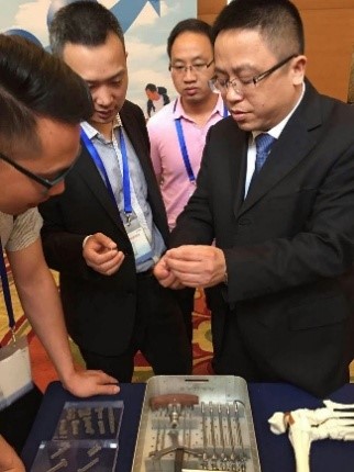 會(huì)議期間,全國(guó)足踝外科學(xué)組副組長(zhǎng)唐康來(lái)教授親自來(lái)到展臺(tái),向醫(yī)生介紹了距骨病灶清除植骨工具,并且親自操作演示。足踝外科學(xué)組組長(zhǎng)姜保國(guó)教授對(duì)此工具給予了高度評(píng)價(jià)。