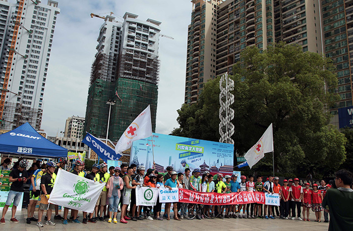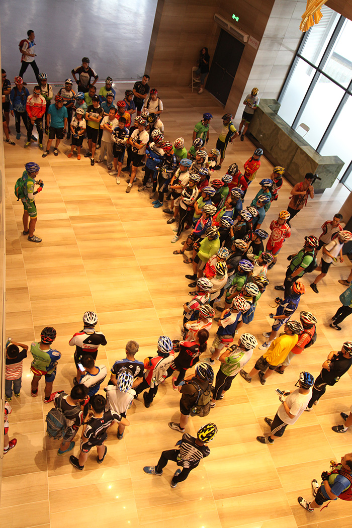 韶關(guān)南華寺門口,早上六點(diǎn),王衛(wèi)領(lǐng)隊(duì)準(zhǔn)備大穿越最后一天的騎行沖刺