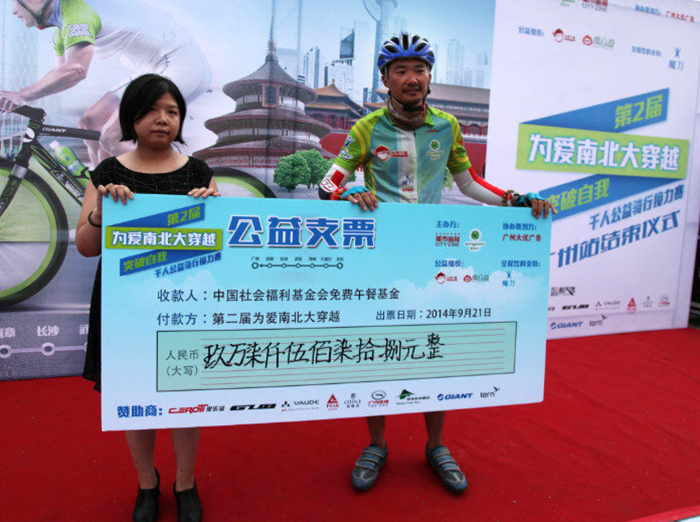 今年9月,他的團(tuán)隊(duì)再次從北京出發(fā),用了16天的時(shí)間,橫穿華北平原,渡過黃河長(zhǎng)江,過瀟湘,抵南粵。最終,完成了十站的愛心接力與公益?zhèn)餍街谩?br/>