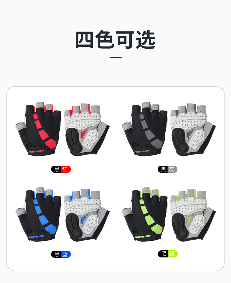 產(chǎn)品名稱:GUB 2098手套 可選顏色:黑紅、黑灰、黑綠、黑藍 可選尺寸:S碼 M碼 L碼 XL碼 XXL碼 毛重:約53-58克