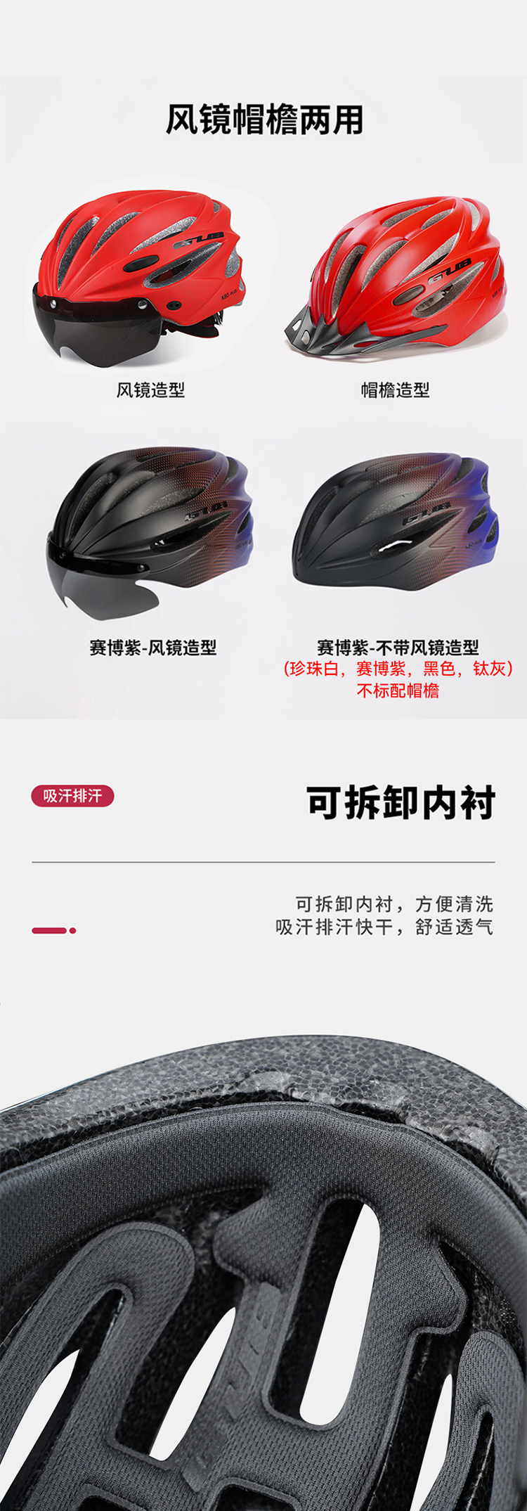 說(shuō)明:產(chǎn)品只標(biāo)配墨色鏡片,黃色和透明鏡片請(qǐng)按需購(gòu)買,除賽博紫外其他顏色除了風(fēng)鏡還標(biāo)配帽檐