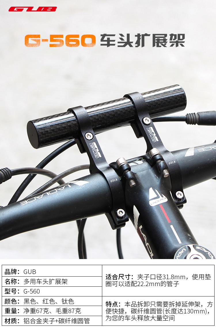 說明:本品拆卸只需拆掉延伸架,方便快捷,碳纖維圓管(長度達130mm),突破空間限制,讓您的車頭逼格更高!