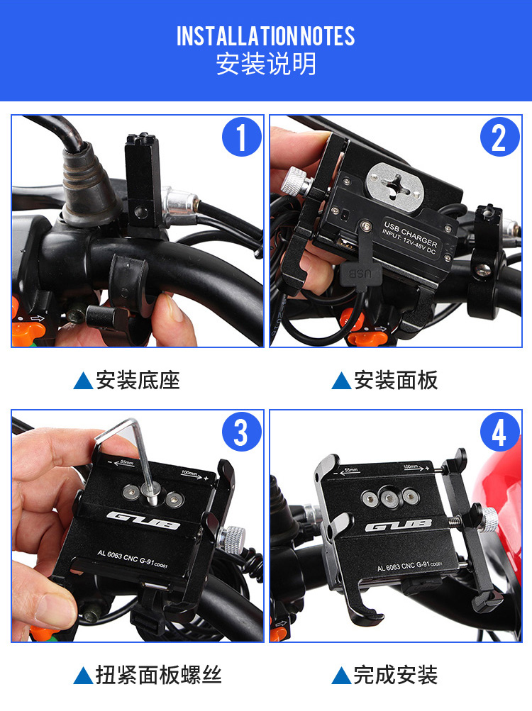 特點(diǎn):全鋁合金架體,四對(duì)位加長(zhǎng)固定部+強(qiáng)化底托,更標(biāo)配穩(wěn)固綁帶,高兼容性不挑手機(jī)型號(hào),連接電瓶后可為手機(jī)充電,摩托車(chē)/電動(dòng)車(chē)等都可使用!