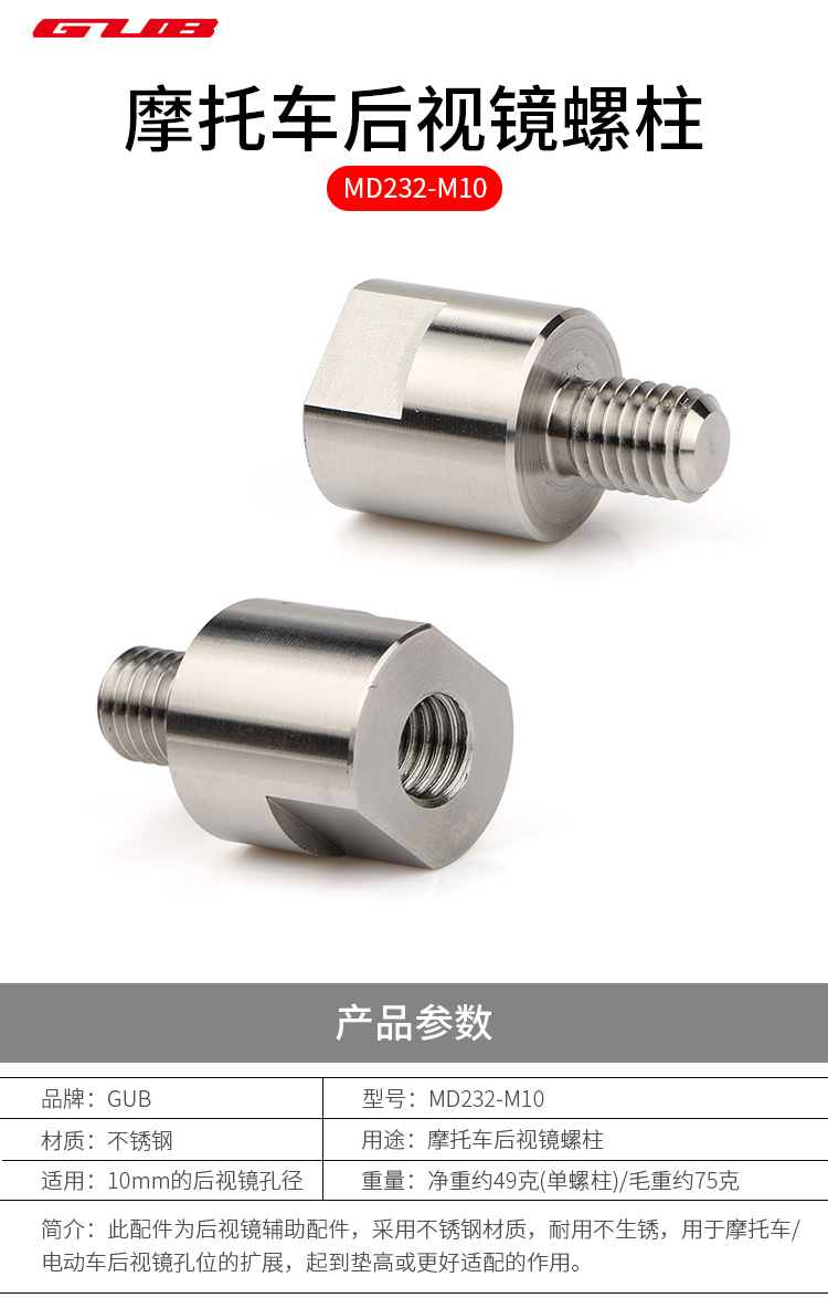 產(chǎn)品:GUB MD232-M10 摩托車后視鏡螺柱