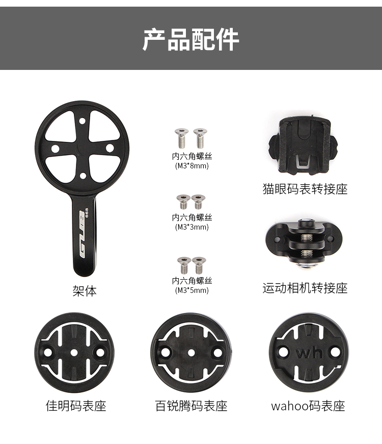 配置:配運(yùn)動相機(jī)轉(zhuǎn)接座,wahoo、佳明、百銳騰和貓眼碼表接座