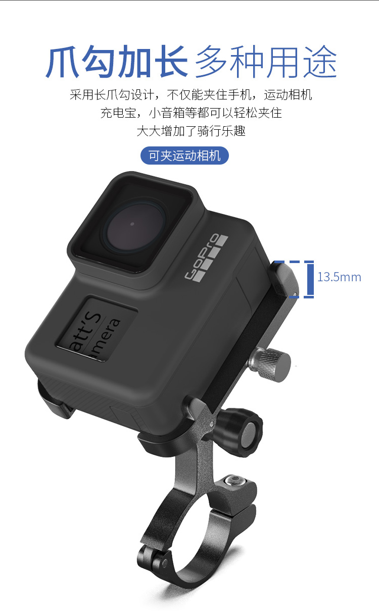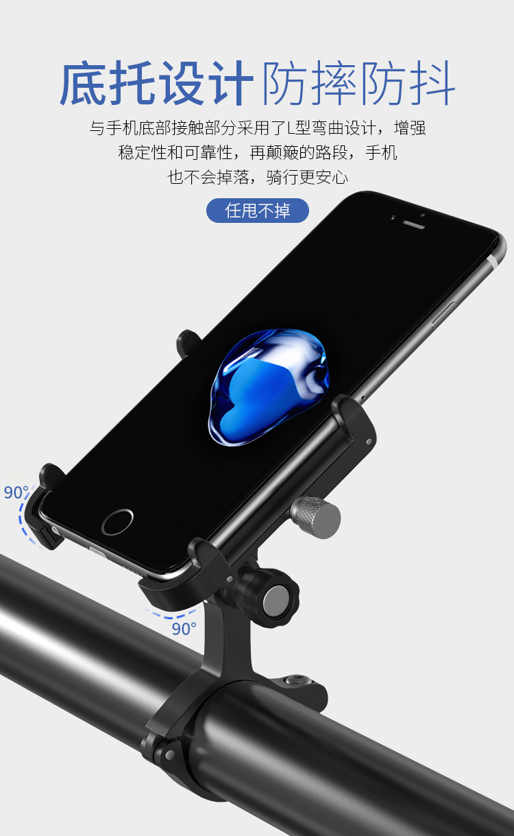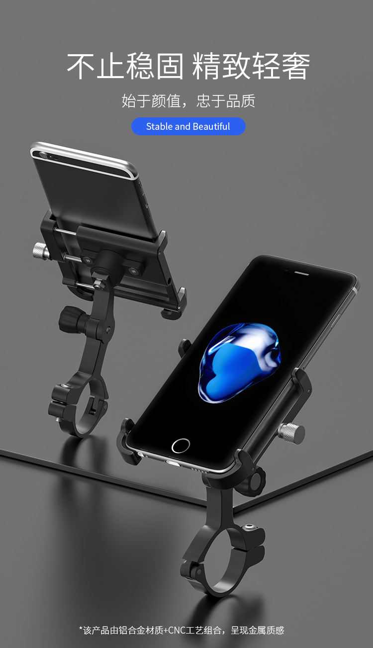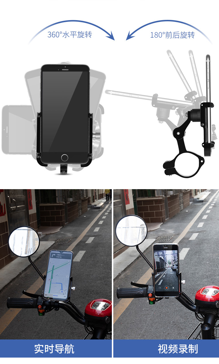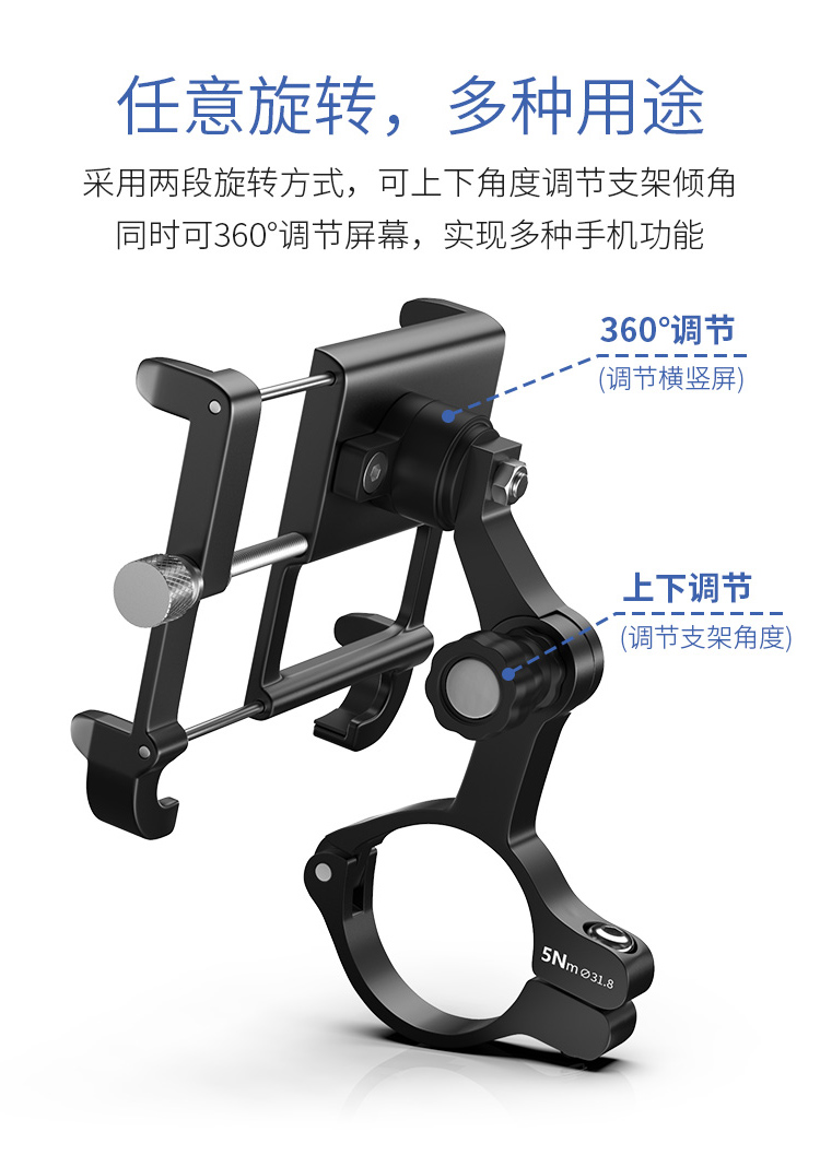 特點:全鋁合金架體,雙重調(diào)節(jié),支持前后角度及平面360度調(diào)節(jié),支持手機(jī)架垂直固定,讓手機(jī)秒變運動相機(jī),記錄一路精彩!高兼容性不挑手機(jī)型號,自行車、電動車等都可使用!