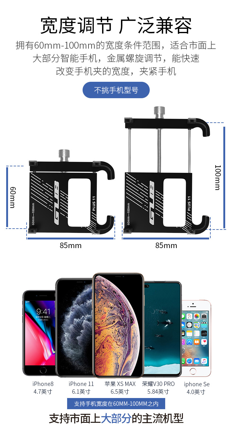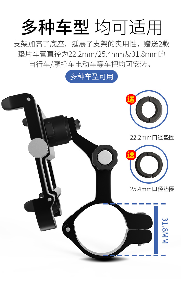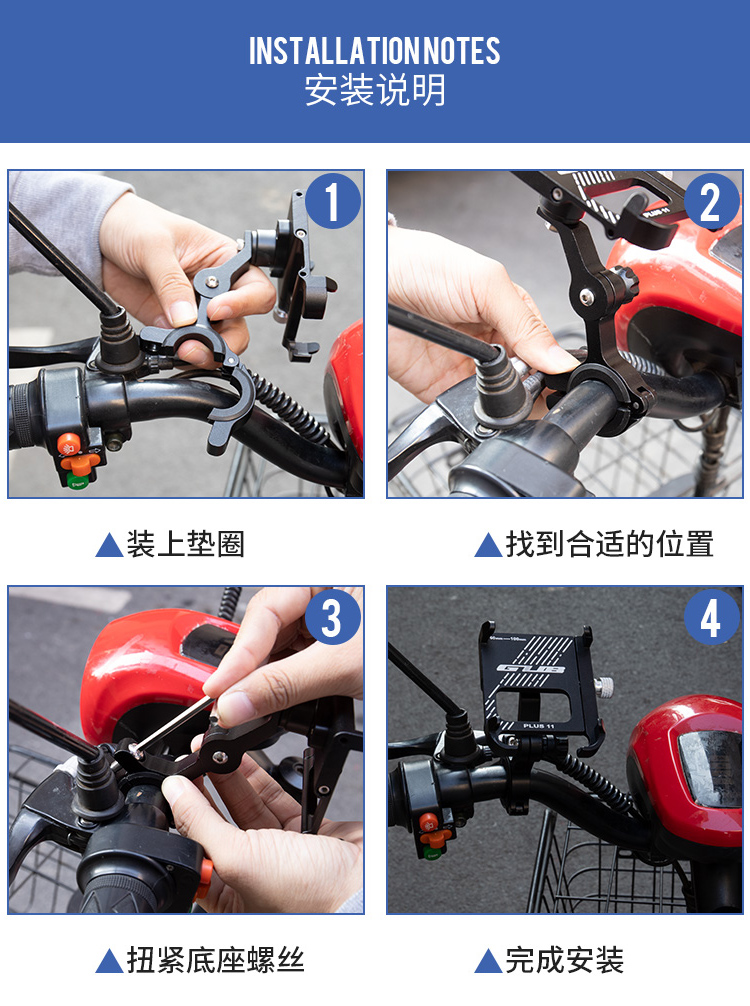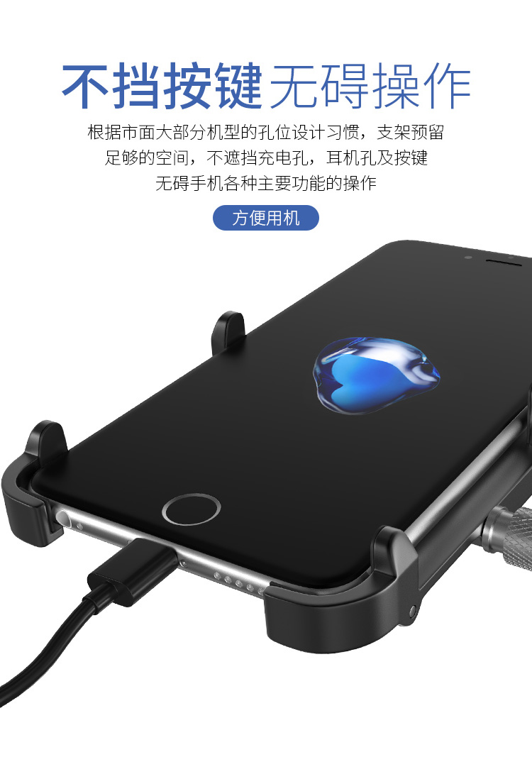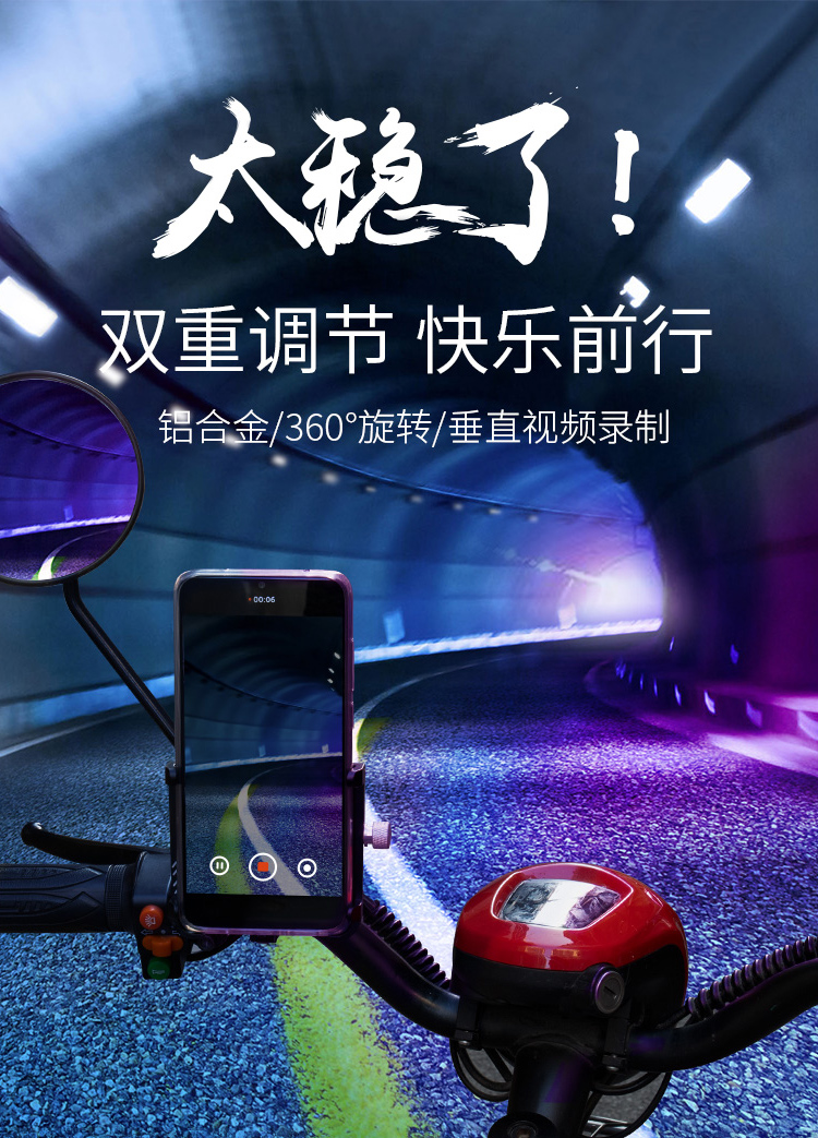 特點:全鋁合金架體,雙重調(diào)節(jié),支持前后角度及平面360度調(diào)節(jié),支持手機(jī)架垂直固定,讓手機(jī)秒變運動相機(jī),記錄一路精彩!高兼容性不挑手機(jī)型號,自行車、電動車等都可使用!