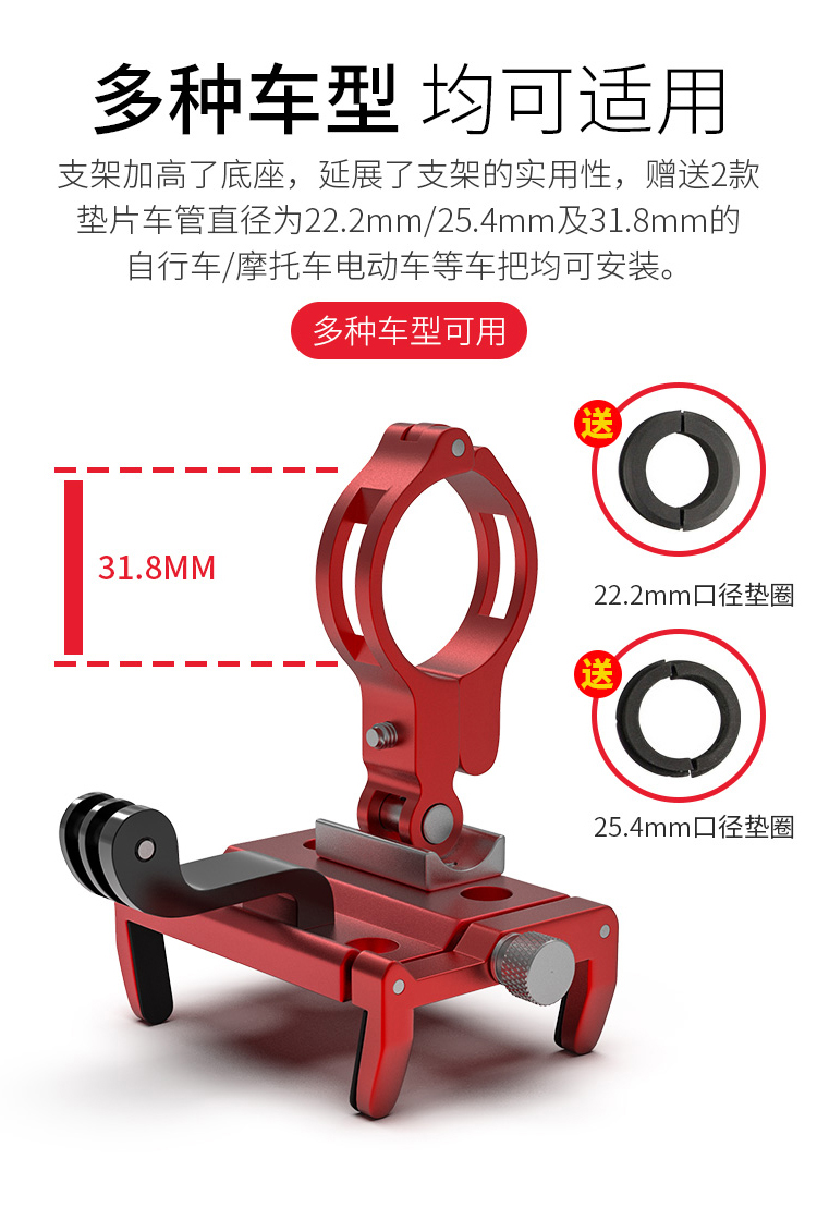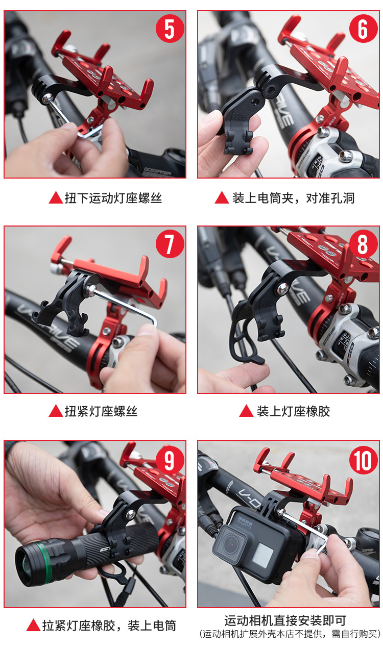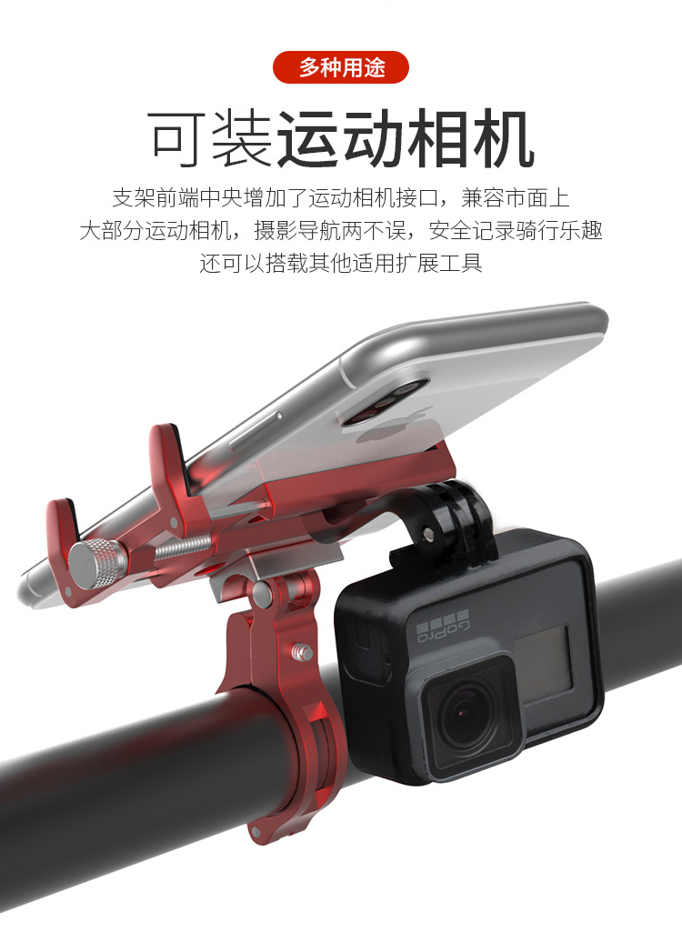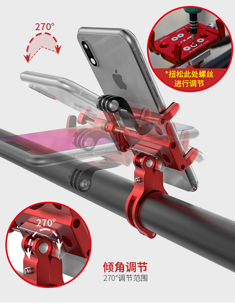 特點:鋁合金架體,高兼容性不挑手機型號,自行車、電動車等都可使用。標(biāo)配電筒支架配件,豐富擴展性能,讓你騎行無憂!