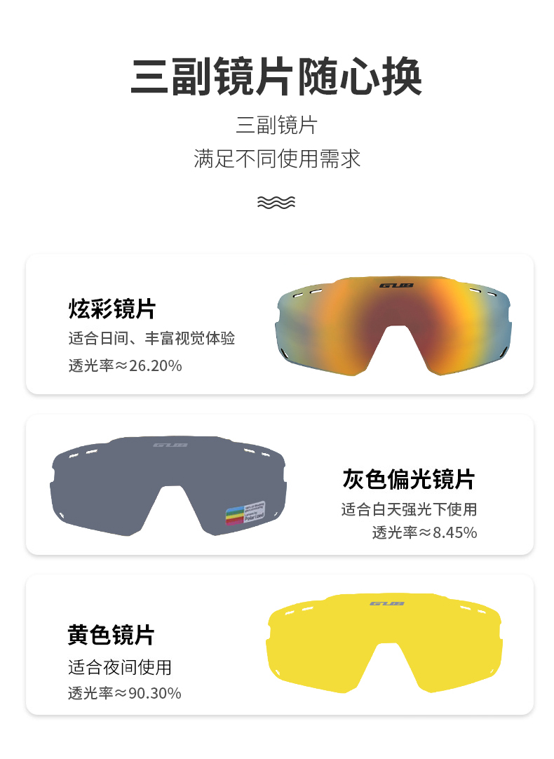 材質(zhì):PC鏡框和鏡腳、PC鏡片、TPE鼻托