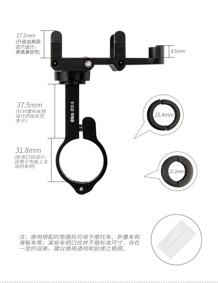 功能:加長(zhǎng)固定部,可應(yīng)付加裝特厚手機(jī)殼的手機(jī),標(biāo)配防盜螺絲和專用扳手,支持免工具平面360度旋轉(zhuǎn)。