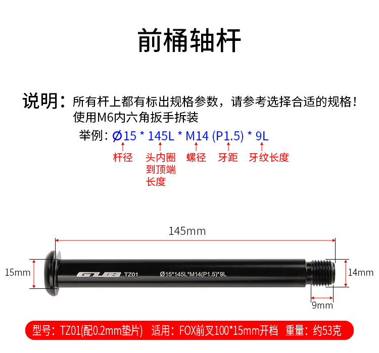 說明:請(qǐng)根據(jù)前叉和車架尺寸選擇合適的桶軸桿!