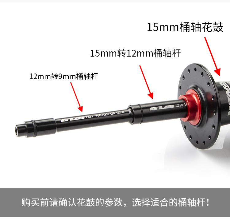 說(shuō)明:請(qǐng)根據(jù)前叉和車架尺寸選擇合適的筒軸桿!