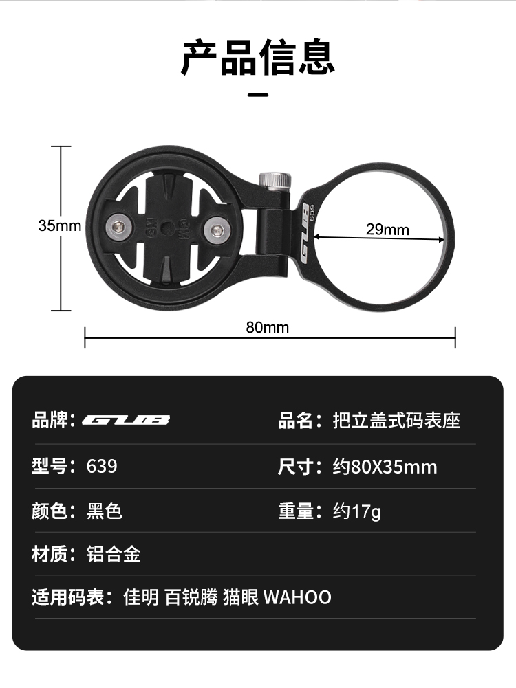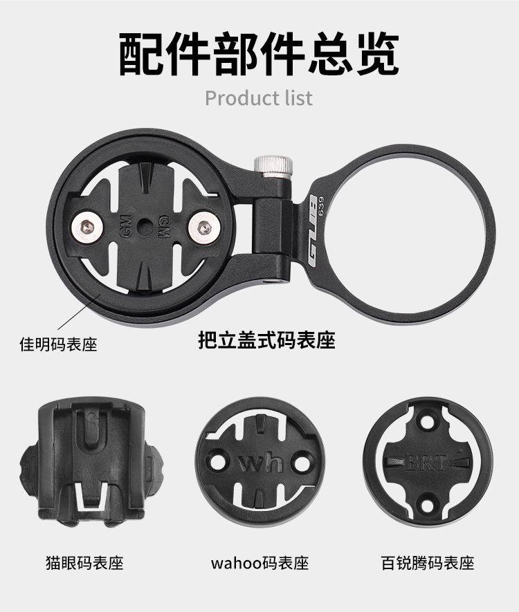 配置:配wahoo、佳明、百銳騰和貓眼碼表接座,兼容多種碼表,可調(diào)角度設計