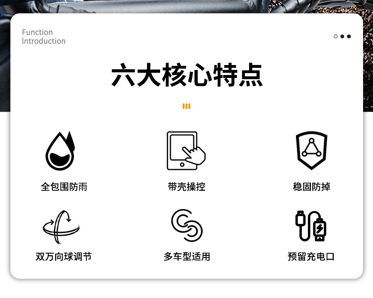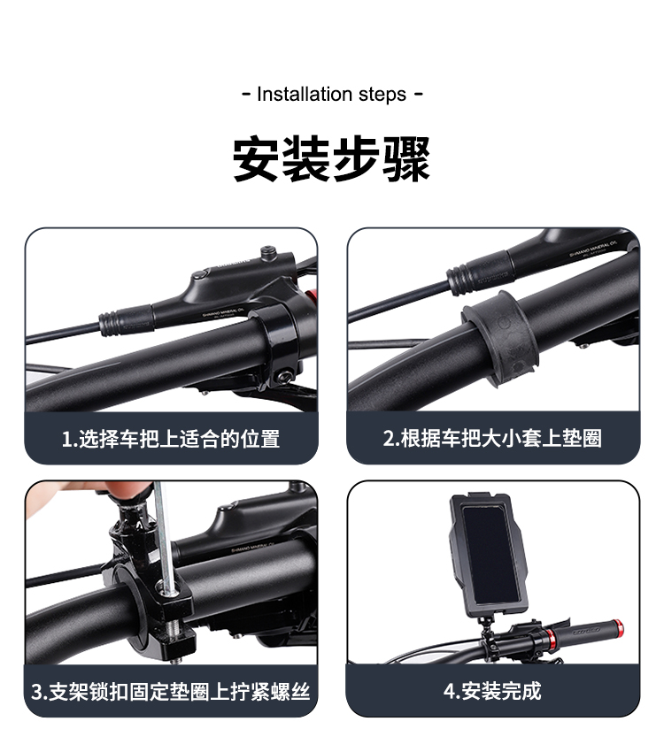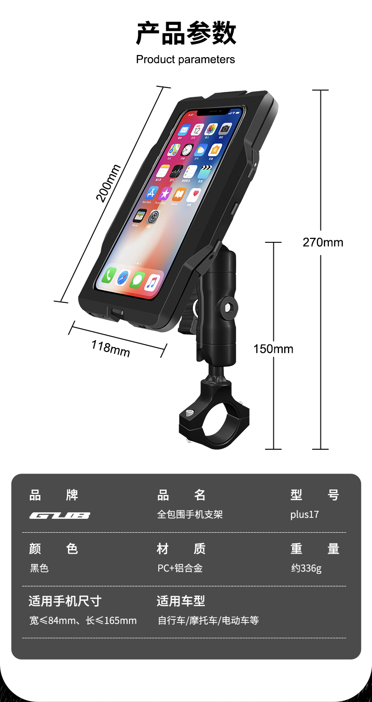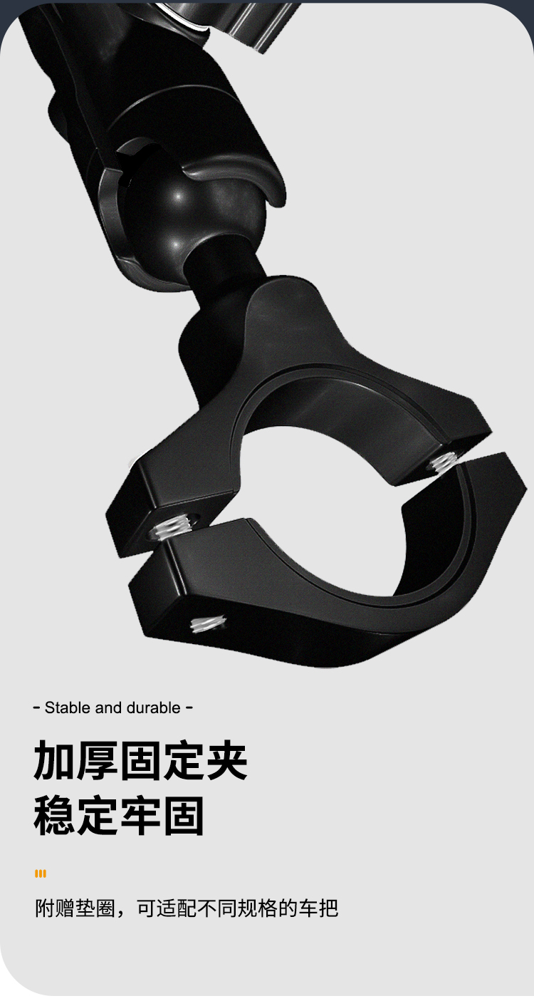 特點:鋁合金支撐架,全封閉手機盒,防雨無憂,高兼容性不挑手機型號,摩托車、電動車等都可使用,滿足多場景使用需求。
