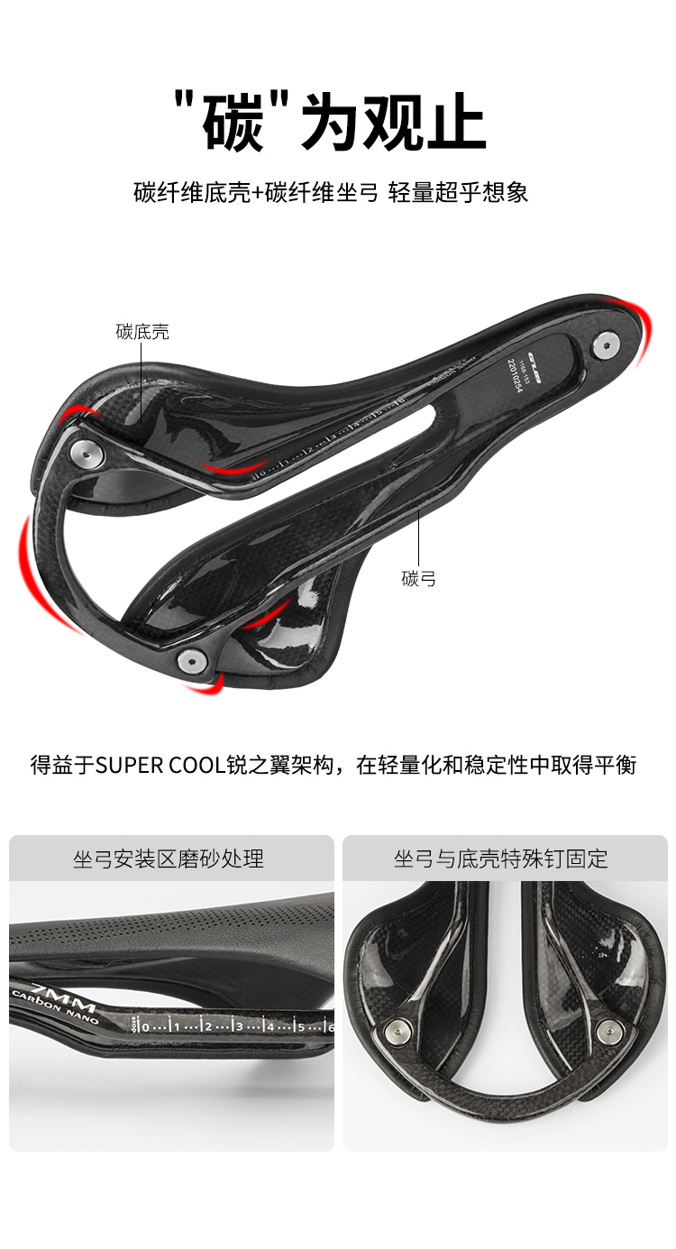 特色:Super Cool架構(gòu),外觀拉風(fēng),超纖皮表面耐磨有質(zhì)感,碳纖維底殼+碳弓強(qiáng)度高重量輕,中空設(shè)計(jì),疏風(fēng)排熱