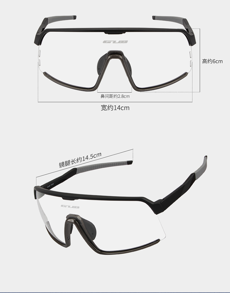 顏色:啞黑/透明變色+炫紅偏光、亮白/透明變色+白冰藍(lán)偏光