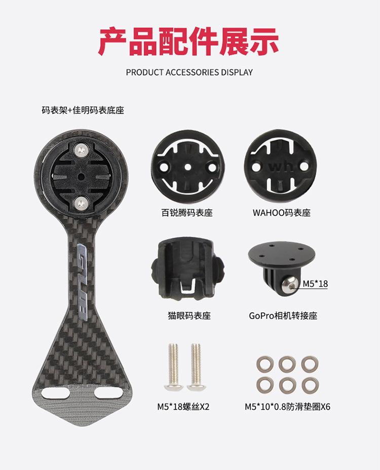 配置:配運(yùn)動(dòng)相機(jī)轉(zhuǎn)接座,wahoo、佳明、百銳騰和貓眼碼表接座