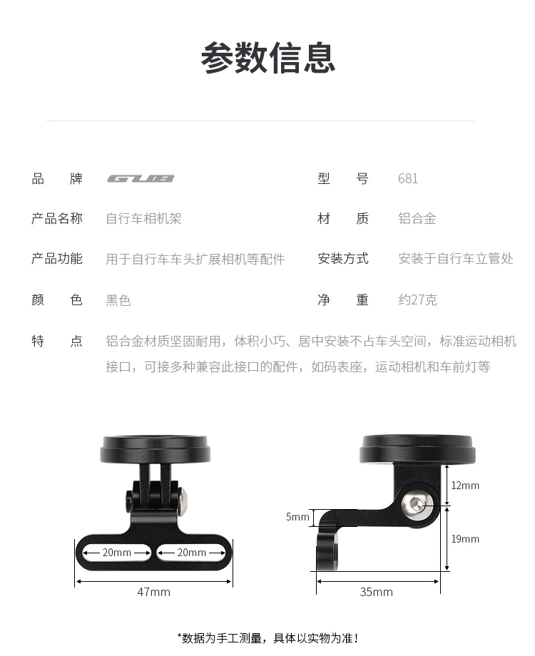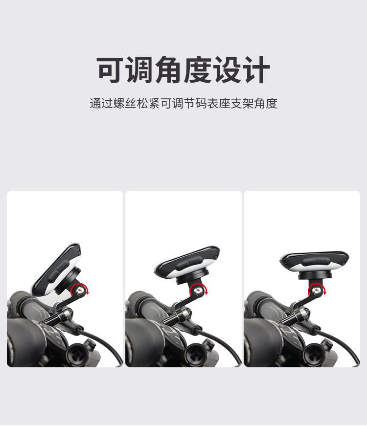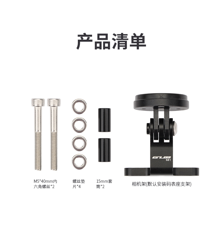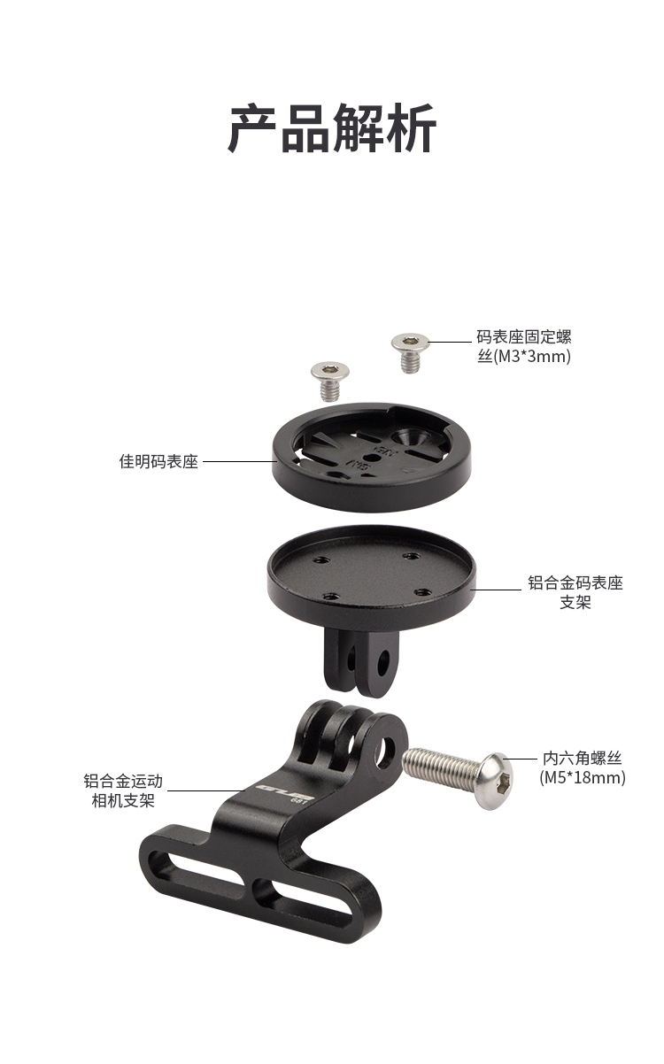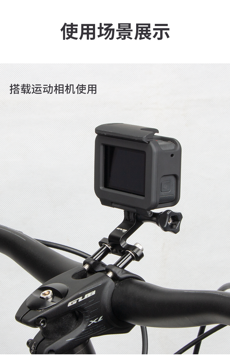 特點:鋁合金材質堅固耐用,體積小巧、居中安裝不占車頭空間,標準運動相機接口,可接多種兼容此接口的配件,如碼表座,運動相機和車前燈等