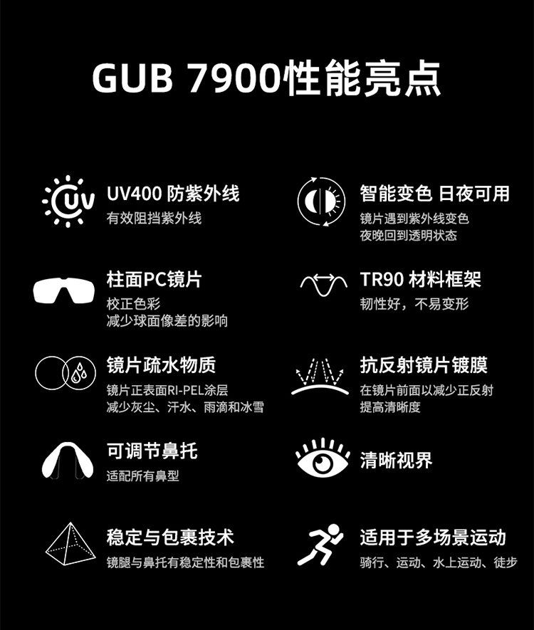 名稱:GUB 7900 變色騎行眼鏡