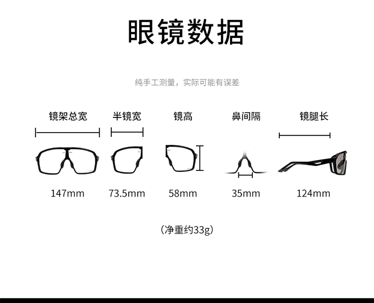 重量:眼鏡凈重約33克,毛重151克(含外包裝)