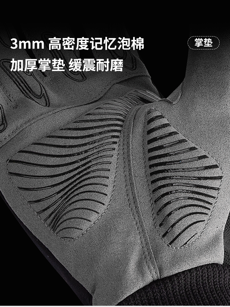 材質(zhì):30D牛奶絲手背、搖粒絨內(nèi)里、超纖手掌、3MM記憶掌墊、Visa擦汗布、拇指食指導電布