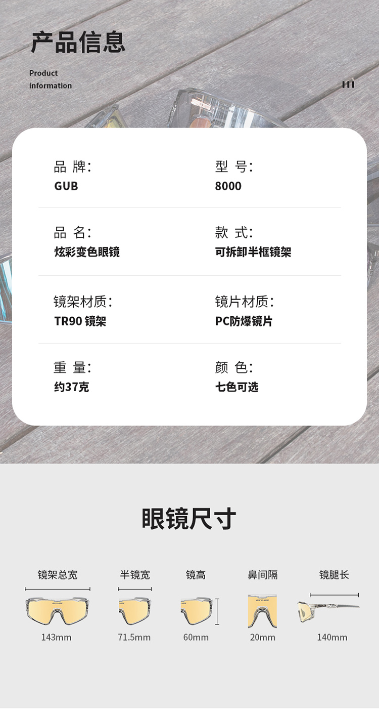 名稱:GUB 8000 炫彩變色騎行眼鏡