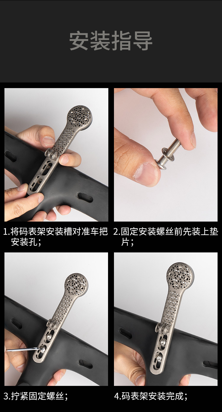 特點:鈦合金架體,3D打印工藝,居中安裝節(jié)省空間(一體把專用),兼容多種碼表,標配運動相機接座,可擴展使用運動相機等配件