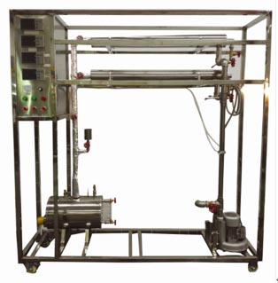 套管換熱器、蒸汽發(fā)生器、氣泵、熱電偶、數(shù)顯儀表、壓力表、熱球風(fēng)速儀或轉(zhuǎn)子流量計、實驗管道、閥門、不銹鋼框架、控制屏。