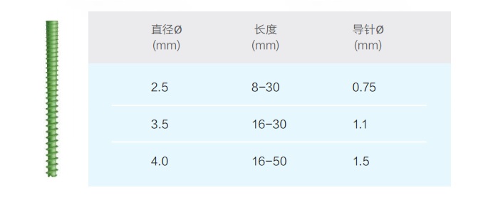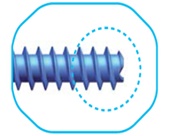 -漸變螺距設計●釘尖部分寬螺紋設計使螺釘在擰入時前端比后端進入更快,因此對骨折塊產(chǎn)生加壓作用 |